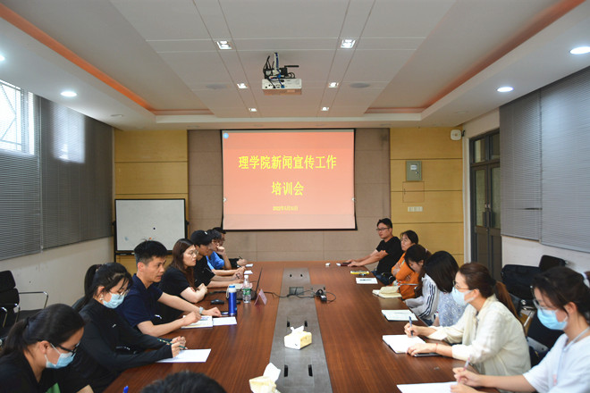 5月31日下午,理学院新闻宣传工作培训会在钱伟长楼201会议室举行,校党委宣传部张青老师受邀担任主讲,院党委副书记、副院长陈周出席活动,师生通讯员参加本次活动。活动辅导员曹磊主持。