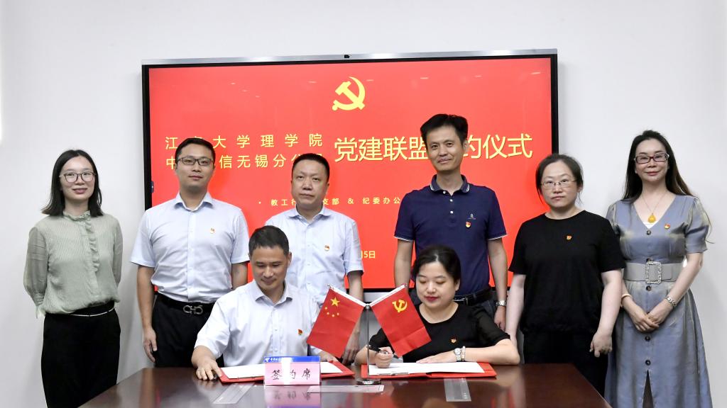 9月6日下午,理学院行政教工党支部与无锡电信纪委办公室党支部共建签约仪式在无锡电信国脉大厦举行。理学院党委副书记、副院长陈周,无锡电信党委委员、副总经理夏杰,两个党支部全体支委参加会议。