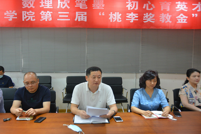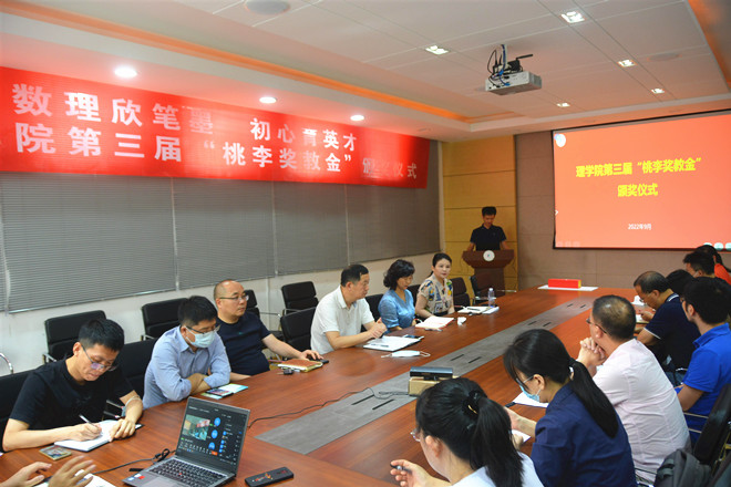 三尺讲台育桃李,一片丹心铸师魂,为庆祝即将来临的第38个教师节,9月7日下午,理学院在钱伟长楼201会议室以线上线下结合方式举行“‘桃李奖教金’”颁奖仪式。学院党政领导及全体教师参加颁奖仪式。仪式由院党委副书记副院长陈周主持。