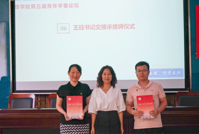 理学院党委书记王珏高度肯定了物理实验中心教工党支部为承办此次活动付出的辛勤努力,并将印有历届青年学者论坛主题和承办支部信息的承接牌交给了大学数学部教工党支部,她希望在支部中传承的“至新”青年学者论坛能越走越远、越办越好。