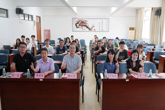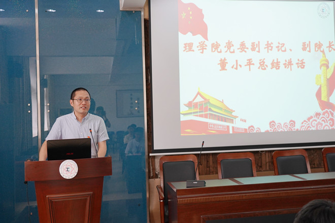 6月29日下午,党的102岁生日即将到来之际,理学院新党员入党“七一”宣誓仪式暨“学思想 强党性 重实践 建新功”第六届主题微党课大赛在钱伟长楼202举行。理学院党委副书记兼副院长董小平、大学数学教工党支部书记李连忠、分团委书记许金红、本科生第二联合党支部书记曹磊、本科生联合党支部书记李丹出席活动,全院学生党员通过线上线下方式参与观摩活动。活动由学生党员冯贺发主持。