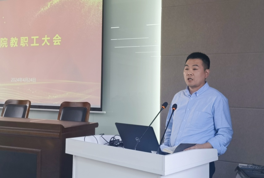 杨国锋通报了近段时间教育部公布的部分直属系统违纪违法典型案例,并结合高校教学科研实际,从思想根源、行为习惯、责任担当、纪法意识等方面进行了全面深刻的剖析。他指出,此次的案例警示教育,旨在以案说德、以案说纪、以案说法;用身边人身边事教育引导全院教职工知敬畏、存戒惧、守底线。全体教师都应以案为鉴,深刻汲取案例中的教训,严守纪律、守规于行。杨国锋同时强调,此次活动是院党委深入推进党纪学习教育,促进党纪学习教育与中心工作相结合,强化师德师风建设的重要内容之一。全体党员干部应以此次活动为契机,进一步深刻领会党纪学习教育的重要意义,提高政治站位、切实履行责任;各党支部应将开展党纪学习教育作为重要政治任务,加强教育引导,强化日常监督,守护良好生态;全体党员应全面落实党纪学习教育各项目标要求,掌握学习内容、发挥榜样作用、自觉忠诚担当;全体教师应将纪律准则转化为日常的行为习惯和自觉遵循,牢记初心使命、锤炼政治品格、修身立德铸魂。