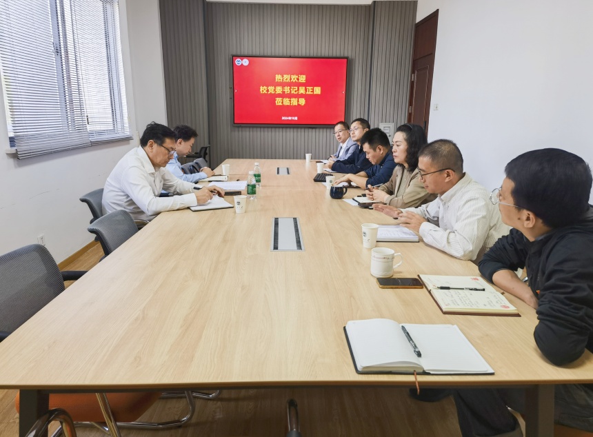 10月11日上午,校党委书记吴正国赴理学院调研指导,理学院全体班子成员参加,校党委办公室主任王维陪同调研。