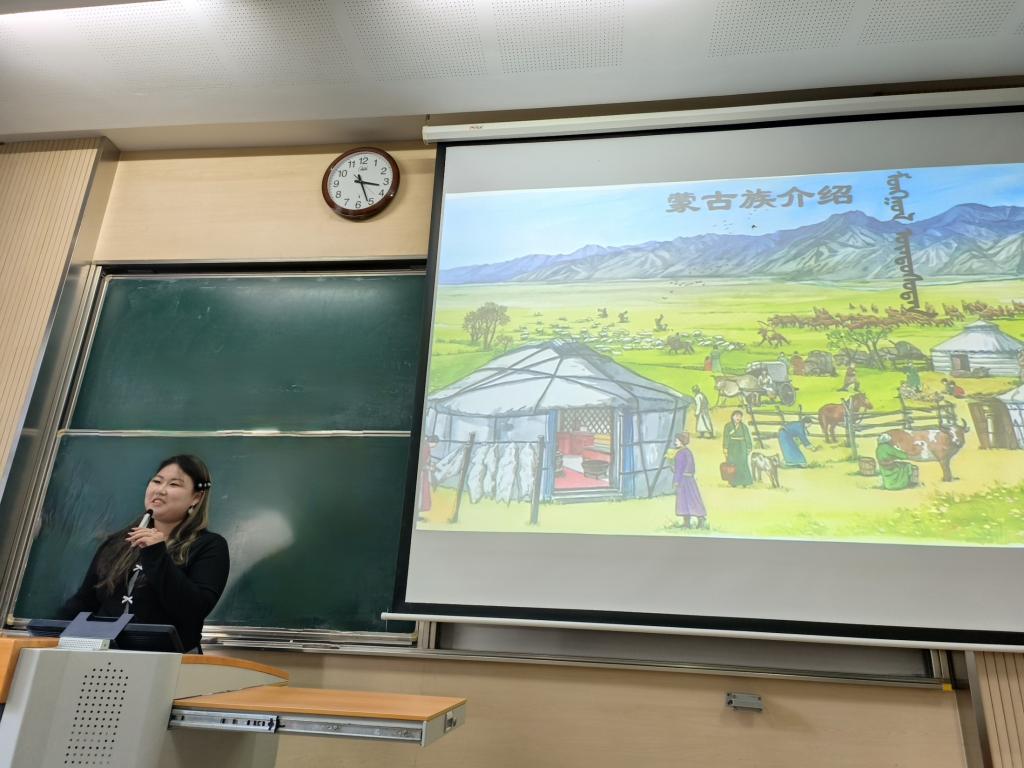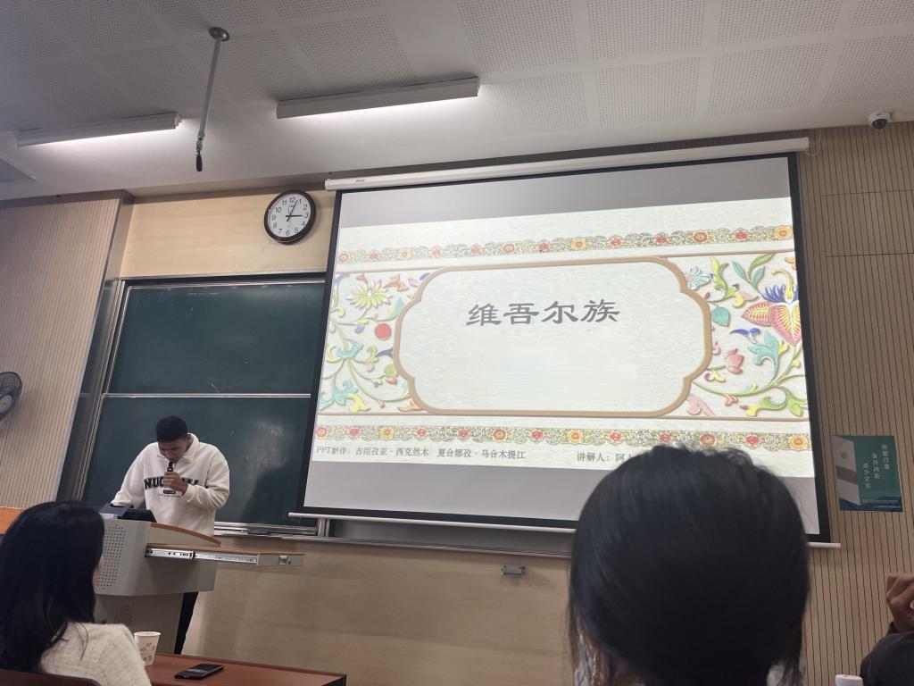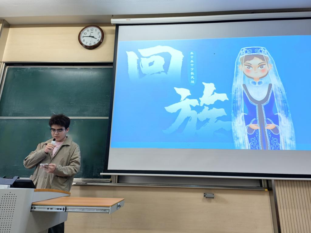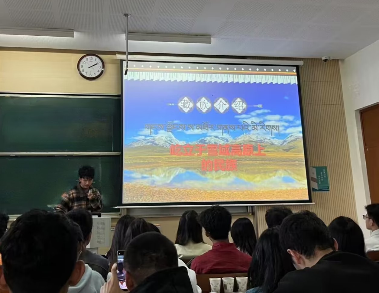 来自藏族、维吾尔族、蒙古族、回族等民族的学生代表依次上台做了专题交流,共同为大家献上了丰富多彩的文化盛宴。他们围绕民族历史起源、语言文字、民族服饰、民风民俗,民食民居以及民族艺术等方面,以ppt、视频、音乐和服装展示等形式进行了生动而精彩的讲解。藏族同学的民族服饰,让同学们领略到了藏式服装的精美与智慧;维吾尔族欢快富有感染力的舞蹈,让同学们赞叹不已;蒙古族歌曲悠扬在耳边,让同学们联想到在广阔草原上的自由生活;回族传统美食更是让同学们大饱眼福。