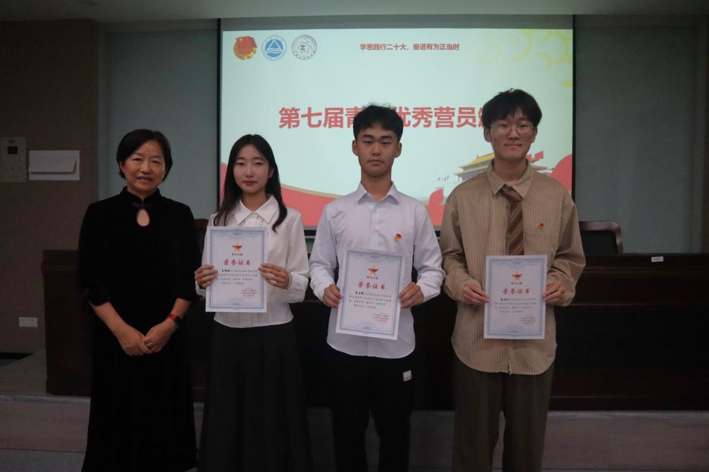 第七届“青马”训练营优秀营员代表贾正铎分享收获心得。他讲述了自己进入“青马”训练营的经历,从最初的青涩到成熟、到成为一个能积极影响带动身边人的坚定马克思主义者。他号召大家要树立远大理想,不断拓宽眼界,完善发展规划,争做新时代青年马克思主义者。高淑梅为第七届“青马”训练营优秀营员贾正铎、王明松、姜雨欣颁奖。第八届“青马”训练营代表柴承源发言。作为刚入营的新成员,他分享了自己对“青马”训练营的期望和计划,号召大家在“青马”训练营中坚定信仰,强化本领,锤炼品格,不负嘱托,勇担时代使命,为社会的发展与进步贡献青春力量。