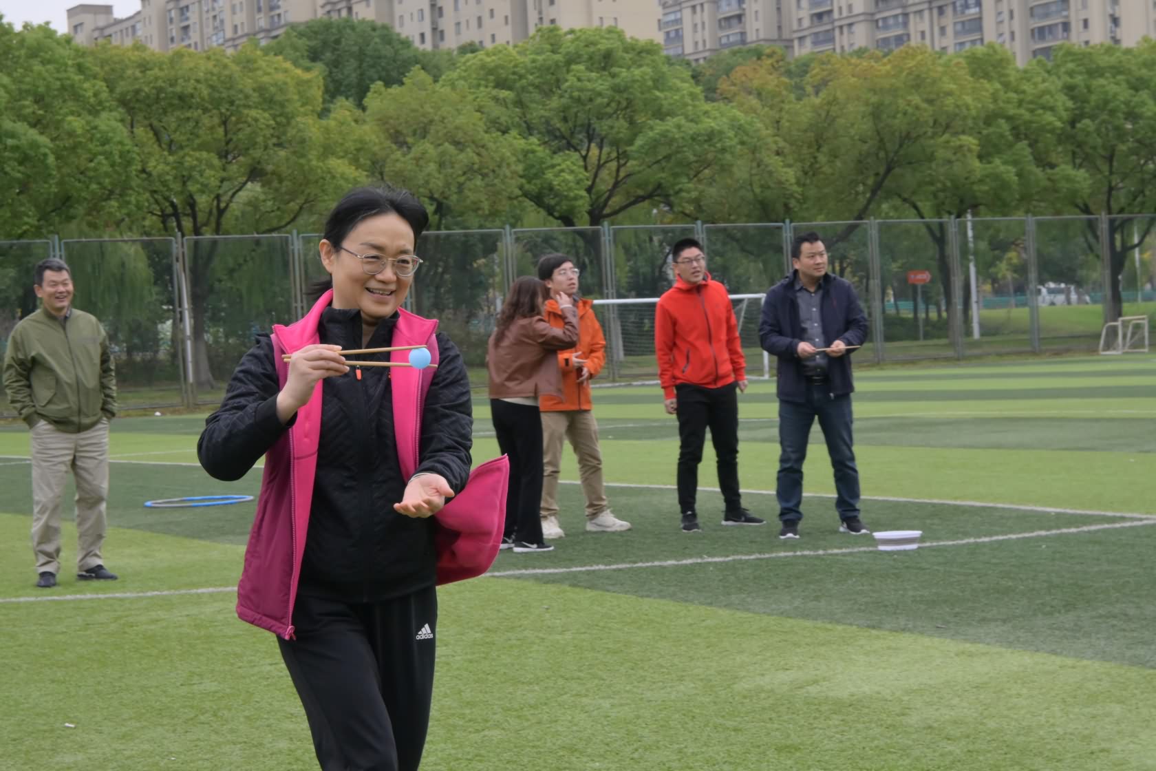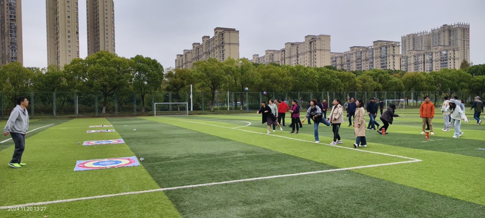 比赛过程中,现场气氛热烈而欢快。老师们时而欢呼雀跃,时而加油鼓劲,整个足球场充满了欢声笑语。大家纷纷表示,这样的趣味运动会不仅让他们锻炼了身体,还增进了彼此之间的了解和友谊,增强了团队的凝聚力和向心力。