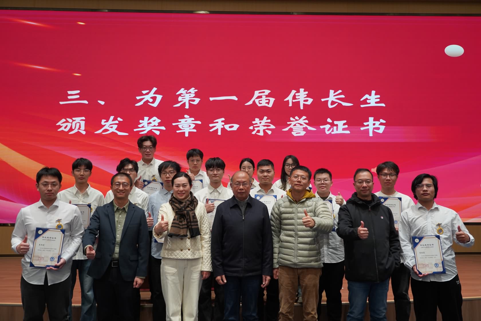 第一届伟长生颁发奖章证书合影