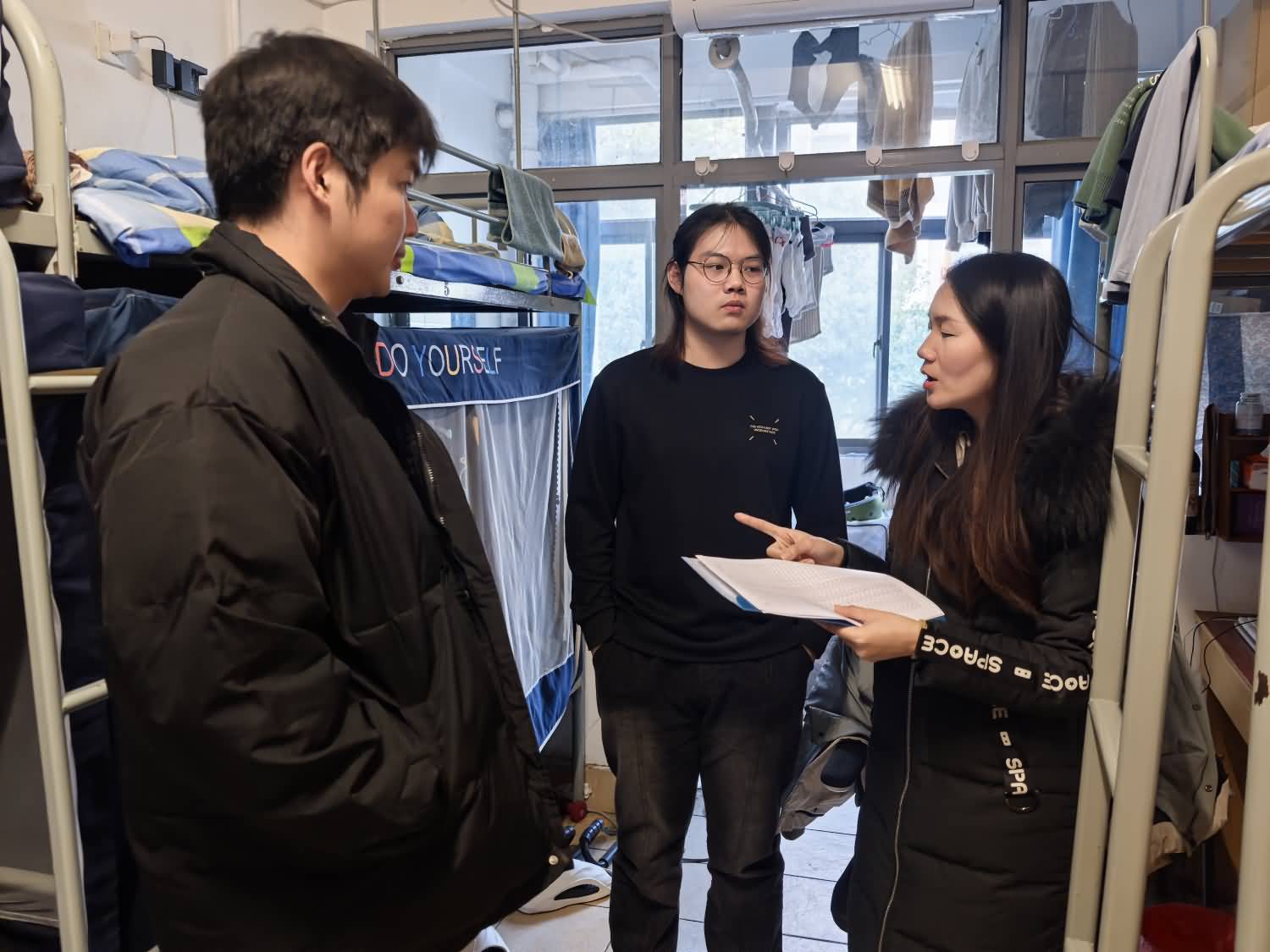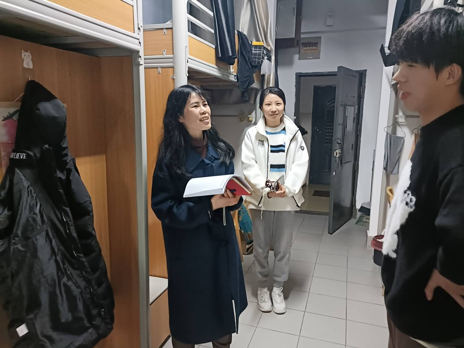 随后,团队分组行动。辅导员带领学生干部先后走访了桃园、李园、榴园、橙园、梅园和桂园六大园区。辅导员们耐心倾听同学们的心声,详细了解大家的学业进展、生活需求以及未来规划,并针对性地提供了建议与帮助,重点关注学生的实际困难,积极收集大家对学院管理与服务的意见建议,努力为同学们营造更加舒适、和谐的学习生活环境。