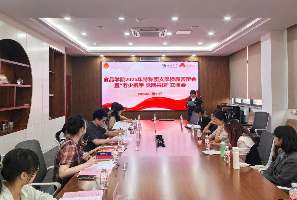 近日,食品学院2025年度特称团支部换届答辩会暨“老少携手 党团共建”交流会在学院D925会议室举行。食品学院离退休党支部党员朱雅东,学工办主任兼分团委书记李金杰,关工委秘书胡卉君,2023级本科生辅导员崔家玮,2024级本科生辅导员周雨洁,特称团支部书记宋锦宏、安笑淋等共同参与活动。活动由学院团务中心委员陈果主持。