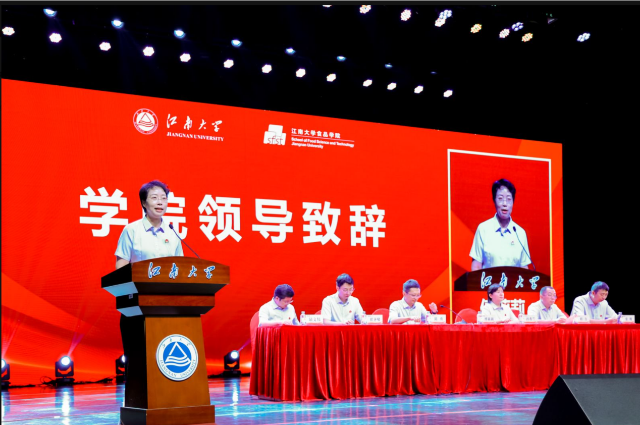 2025级本科生毕瑞莹、2025级硕士研究生刘振宇、2025级硕士研究生蒋美仙(印度尼西亚籍)、2025级博士研究生高鹿川分别发言,表达了传承食品人使命、以责任与创新服务民生、面向世界推广江南风味的信心与决心。