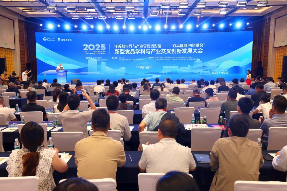 为全面贯彻落实习近平总书记在参加十四届全国人大三次会议江苏代表团审议时重要讲话精神,深入推进党的二十大关于教育、科技、人才“三位一体”融合发展的重要部署,推动科技创新和产业创新融合,9月26日上午,江苏教育界与产业界对话对接——“双高协同 四链融合”2025新型食品学科与产业交叉创新发展大会在锡召开。