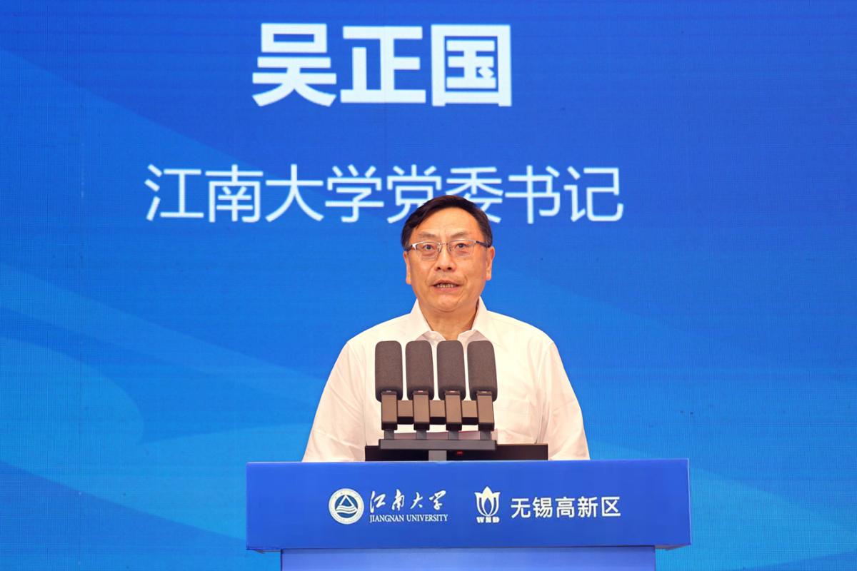 吴正国代表江南大学向与会领导、嘉宾表示热烈欢迎和衷心感谢。他指出,本次大会是贯彻落实习近平总书记“大食物观”等国家战略的重大响应,江南大学将以本次大会为桥梁,与产业领域的高校、企业同仁一道,在“双高协同” 中凝聚智慧,在“四链融合”中破解难题,共同探索教育赋能产业、产业反哺教育的新路径、新模式,为建设教育强国、科技强国、人才强国作出贡献。