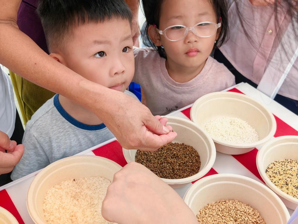 “发芽土豆挖掉芽就能吃?”“海鲜与水果同食会中毒?” 题卡上的常见误区引发亲子家庭热烈讨论,小朋友们踊跃举手发表观点,家长们则在互动中修正认知。亲子家庭化身“老鼠家族”,在谷物堆中寻找藜麦、荞麦、高粱、小米、大米、红米、燕麦、糯米等8种食材。大米、小米、糯米成为多数小朋友的“熟面孔”,而外形独特的藜麦则成了现场“最难寻”的食材。亲子间互诉爱意后开启挑战,菜籽油、橄榄油、花生油、牡丹籽油等整齐排列,大小朋友通过 “闻香气、看色泽”辨别油品,在互动中掌握食用油挑选技巧。“虾壳是厨余垃圾!”“塑料袋属于其他垃圾!”小朋友们手持“仿真剩菜”精准投掷分类箱,在游戏中树立垃圾分类与反食品浪费意识。亲子搭档实战演练误食急救流程,认真学习海姆立克急救法操作要领,将实用急救技能纳入家庭安全“工具箱”,有效提升全民应激避险能力。闯过全部关卡集齐印章后,小朋友们纷纷参与抽奖活动,幸运获奖者抱着礼品露出灿烂笑容,现场氛围温馨热烈。