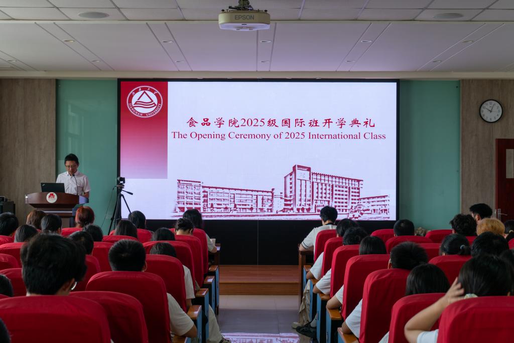 倪晔在致辞中向2025级国际班新生表示热烈祝贺与欢迎,向在线的梅西大学代表致以诚挚的问候。她勉励学子珍惜时光、笃学尚行,努力成长为具备国际视野与综合能力的食品科技人才,在全球舞台上展现江南学子的担当。Jamie Quinton在线致辞中强调,“3+1”联合培养模式旨在夯实学生的专业基础,并培养其以全球视角应对食品安全与营养健康等挑战的能力。