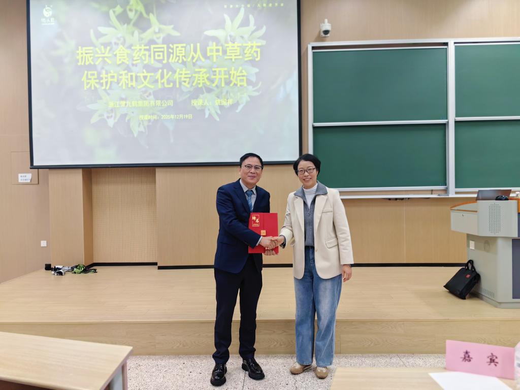 12月19日晚,江南大学食品学院《食品产业导论》系列讲座迎来第五讲。本次课程特邀浙江健九鹤集团有限公司董事长姚国祥先生,为师生带来了一场兼具产业洞察与人文情怀的精彩报告。姚国祥先生不仅是企业家,更担任多项社会职务,是宁波市劳动模范、余姚市社科联副主席,同时也是第七批宁波市非物质文化遗产“余姚铁皮石斛炮制技艺代表”传承人,持续推动铁皮石斛产业发展与文化保护。
