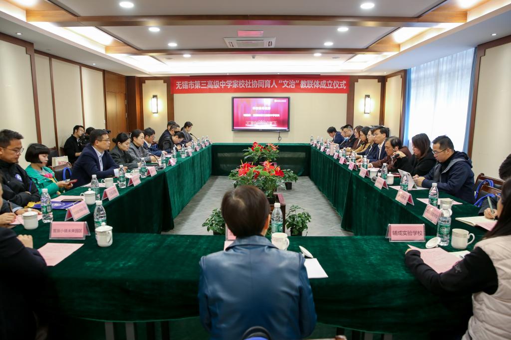 无锡市第三高级中学副校长赵莹宣读“文治”教联体成员单位名单,学校党委书记刘丽平为各成员单位颁发聘书。来自高校、街道、医院、企业、场馆等22家成员单位代表共同见证教联体正式启航。