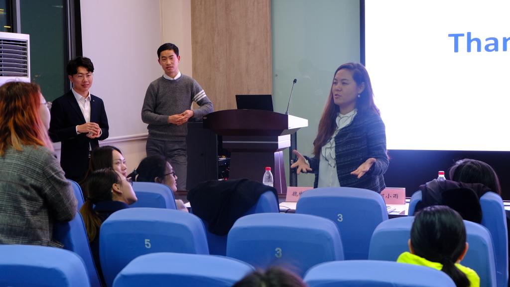 常翠青博士首先为同学们作题为“乳品营养知多少”的报告。她用生动形象的语言辅以文字、图片和图表,向大家介绍了乳与乳制品、牛奶营养成分、乳清蛋白、肌肉对健康的影响等内容,增进了同学们对乳品营养的理解,激发了同学们对乳品科学的兴趣。接着,何小雨经理作了题为“乳配料在食品中的应用”的报告,她介绍了乳清蛋白类产品的消费需求,乳清蛋白的特性以及应用难题,并提出了哥兰比亚公司对此的解决方案,为同学们开展科研实践提供了良好范例。接着,魏彬彬经理作有关“乳清蛋白助力实现健康”的报告,他介绍了Argopur公司及其产品与乳清蛋白,指出当今社会面临的一些健康问题以及针对相关问题的乳清蛋白创新产品,报告内容新颖充实、引人思考。