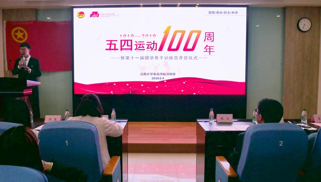 2019年5月4日晚,食品学院在食品楼D912举办了纪念五四运动100周年活动——第十一届青年马克思主义者训练营开营仪式暨“致敬百年”青马公开课。食品学院党委副书记张文、分团委书记王胤等出席仪式。食品学院各学生组织、社团的主要负责人,两届青马训练营营员以及各团支部的基层团支书参加活动。