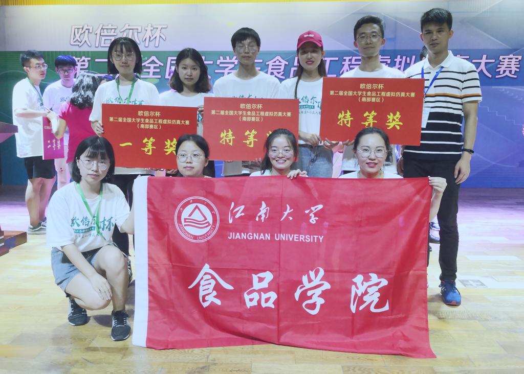 2019年6月28–6月29日,第二届全国大学生食品工程虚拟仿真大赛(南部赛区)在华南理工大学举行。江南大学食品学院3支参赛队伍在南部赛区89支队伍中脱颖而出,取得了优异成绩,其中陈广雪、徐志兵、陈旭小组和孙彦文、邹莹莹、陈雪小组获得特等奖;陈晨、冯若男、李姝琦小组获得一等奖。陈广雪小组将代表江南大学晋级全国总决赛。院教学中心李晓瑄老师、常明老师、辅导员刘鑫带队参加了本次比赛。