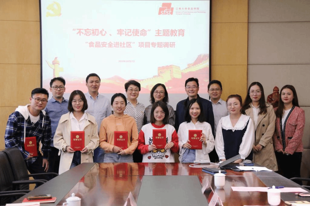为深入贯彻落实开展“不忘初心、牢记使命”主题教育的总体部署,2019年10月17日,“食品安全进社区”项目专题调研会在食品学院D910成功举办。无锡市市场监督管理局于文霞副局长一行、江南大学食品学院党委书记向琪、副书记张文出席了本次调研会。会议由食品学院辅导员李琳主持。