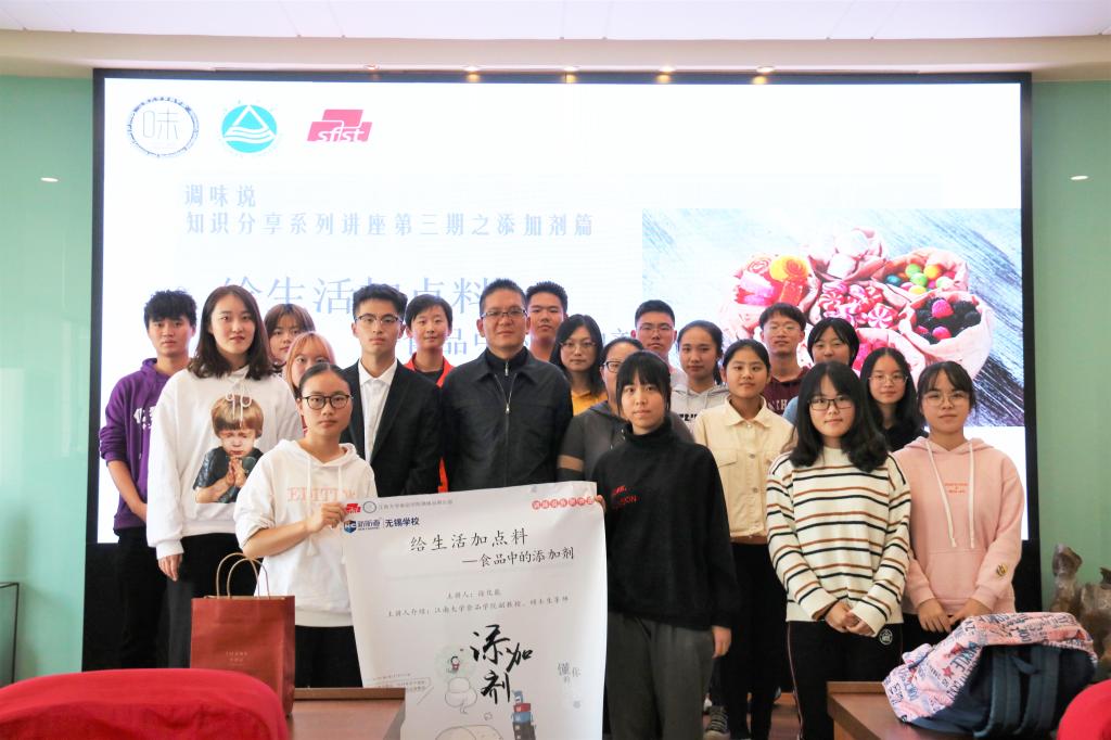 10月30日下午,食品学院在食品楼D912举办“给生活加点料·调味品知识科普系列讲座”第三期“食品中的添加剂”主题讲座,食品学院徐化能副教授担任此次讲座的主讲人,150余名同学到场聆听。
