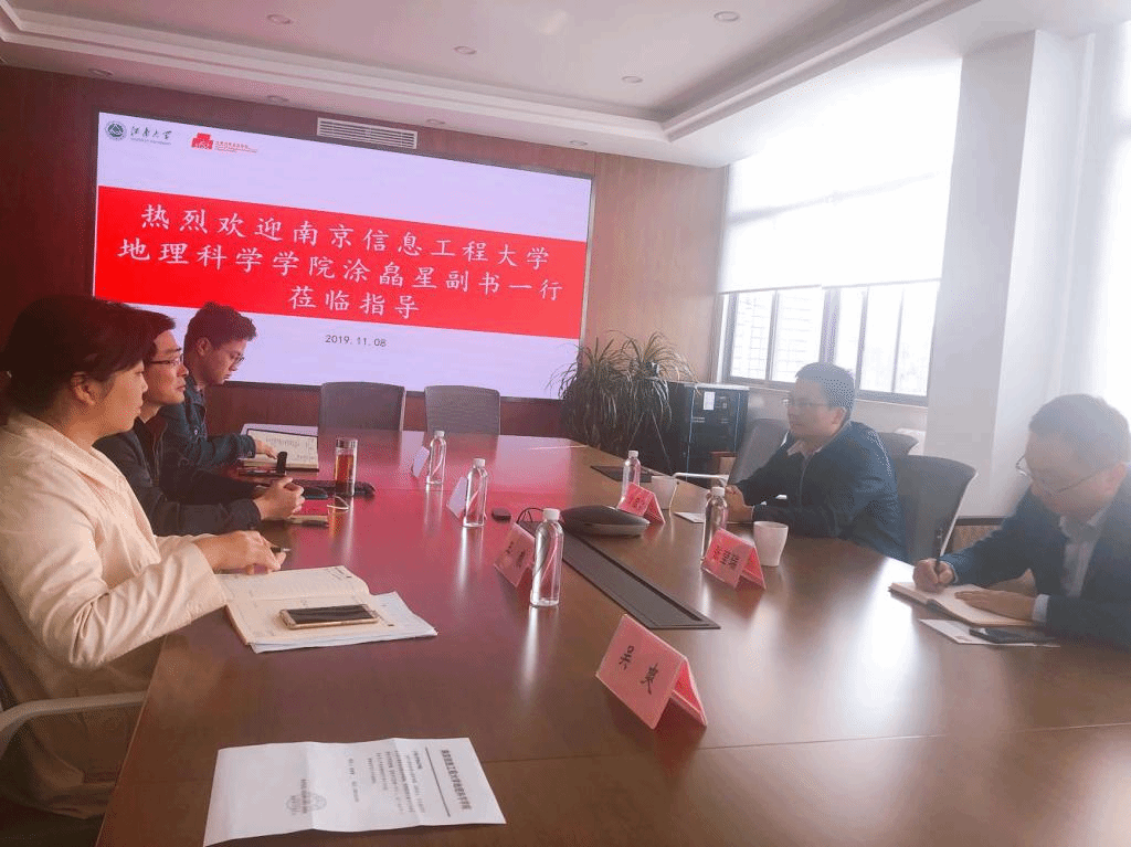 11月8日上午,南京信息工程大学地理科学学院党委副书记、副院长涂皛星,学办主任张莹瑞来我校食品学院进行学生工作专题调研。院党委副书记张文、分团委书记王胤、辅导员朱伟、吴爽参加此次调研座谈会。