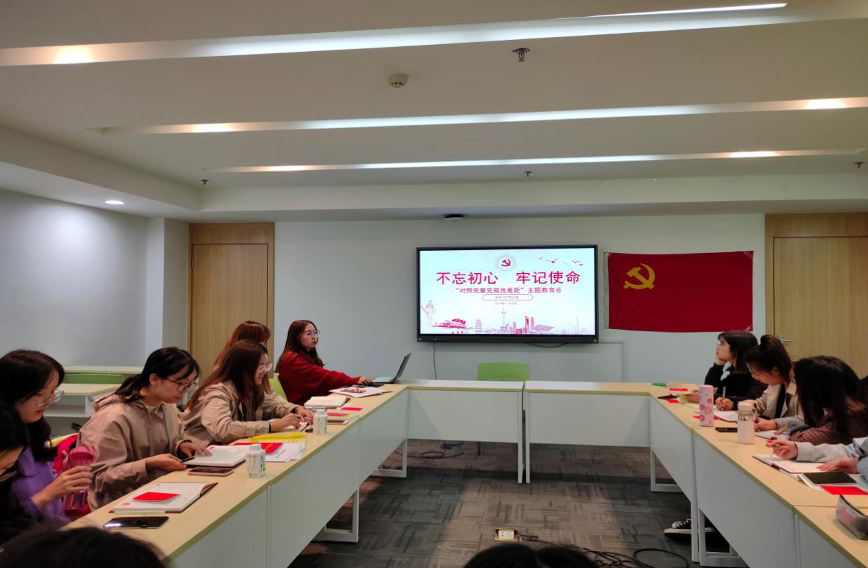 随后,李琳老师主持开展对照党章党规找差距专题会。首先,支部成员共同进行对《中国共产党章程》《关于新形势下党内政治生活的若干准则》《中国共产党廉洁自律准则》和《中国共产党纪律处分条例》等文件的学习,就党组织对党员的要求有了更进一步的认识。理论学习后,所有党员分别从“党员意识、担当作为、服务群众、遵守纪律和作用发挥”等五个方面深刻反思了自己与党组织要求之间的差距,通过自我反省的方式,大家都清晰的认识到了自己现阶段所存在的问题并有针对性地提出了解决方案。