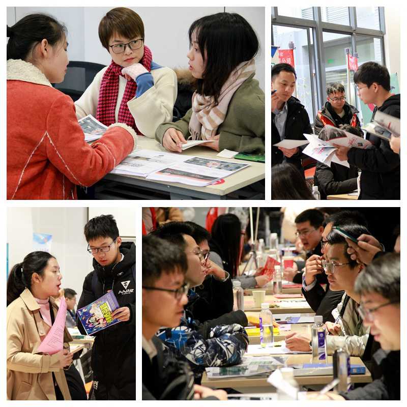 招聘会上,各个公司通过海报、单页等对公司进行宣传,同学们在志愿者的引导下到各公司的展位,递交简历,现场面试。在公司工作人员的讲解下,同学们了解到了各个企业的发展方向、岗位需求、招聘人才的要求等信息,现场气氛十分活跃。