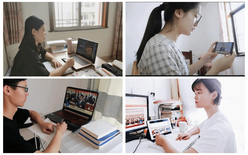 学生在家观看两会