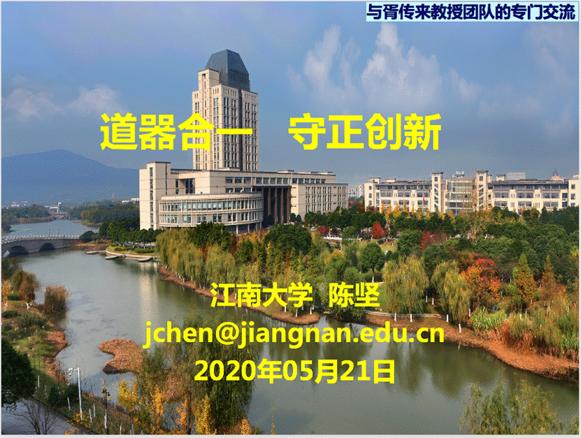 2020年5月21日下午,陈坚院士莅临江南大学食品学院,为食品安全至善创新团队(以下简称团队)带来一场以“道器合一,守正创新”为题的报告会。