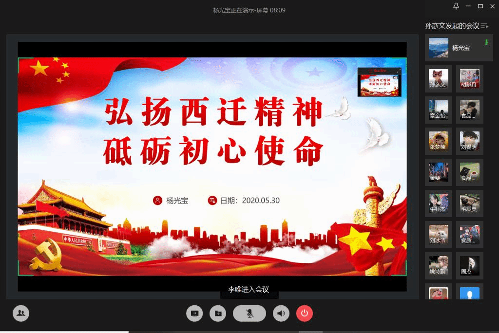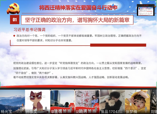5月30日下午,为进一步传承弘扬“西迁精神”,奋力走好新时代新征程,食品学院本科生第一党支部通过企业微信举行“弘扬西迁精神,砥砺初心使命”专题党课。党课活动由支部书记胡晓丹主持,支部组织委员杨光宝主讲。此次党课还邀请了食品营养与功能食品工程技术研究中心博士党支部、食硕1907党支部、食品学院本科生第二党支部共计110余名师生党员共同参与学习交流。