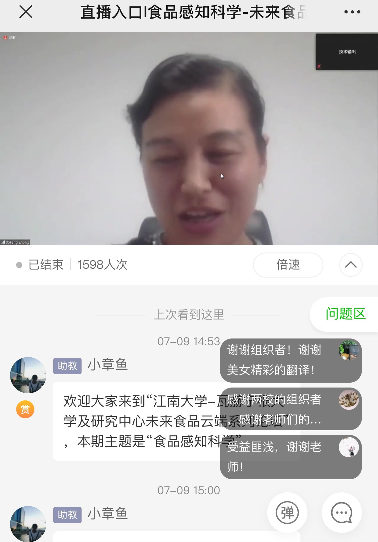 7月9日,“江南大学-瓦赫宁根大学及研究中心未来食品云端系列论坛”第六期会议隆重举行并取得圆满成功。本期会议吸引了来自国内外1600多名专家、学者和同行等听众的积极参与。本次会议采用网络直播的形式举行,围绕“食品感知科学”这一热点的话题展开研讨。会议邀请到了国内外知名专家、学者共同分享未来食品发展的前沿成果,出席本次会议的嘉宾主要有荷兰瓦赫宁根大学及研究中心Liesbeth Zandstra教授、Garmt Dijksterhuis研究员、浙江工商大学陈建设教授以及江南大学钟芳教授。会议有幸邀请到瓦赫宁根大学及研究中心Karin Schroën教授出席并主持。