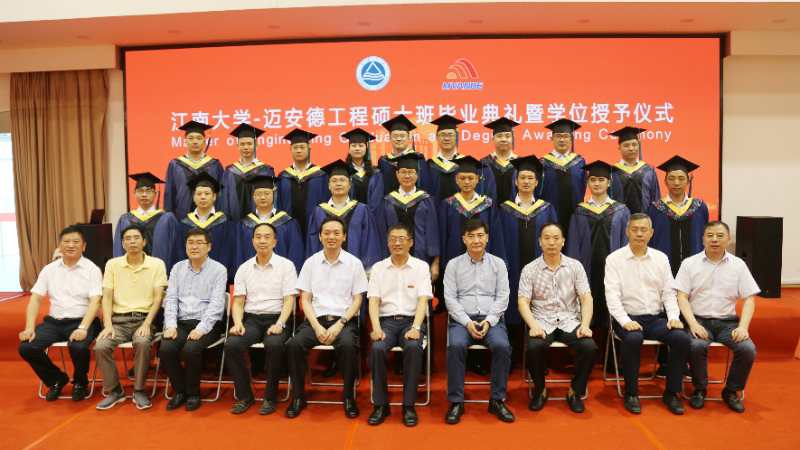 9月2日,江南大学-迈安德工程硕士班毕业典礼在扬州迈安德集团有限公司召开。中国工程院院士、江南大学校长陈卫教授,校长助理、研究生院、学科建设处处长堵国成教授,食品学院院长刘元法教授,迈安德董事长徐斌、总裁荣臻一同出席毕业典礼。参加本场活动的还有江南大学金征宇教授、王兴国教授、金青哲教授和洪雁教授等导师,以及迈安德公司副董事长汪沐、生产总监毛卫江、营销总监周斌、技术总监徐静等。
