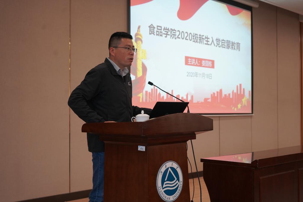 11月18日下午,食品学院2020级新生入党启蒙教育在图书馆三楼报告厅成功举行。本次活动邀请到校关工委常务副主任娄国栋主讲,食品学院党委副书记魏珍吉主持,2020级全体同学聆听了报告会。