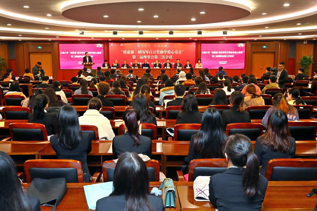 11月26日下午,由我校食品学院首任院长姚惠源、胡珏琴伉俪发起成立的“姚惠源·胡珏琴百万奖助学爱心基金”第二届理事会第三次会议暨“汇聚爱心力量,培育一流人才”研讨会在图书馆五楼报告厅隆重举行。江南大学副校长顾正彪教授,食品学院首任院长、爱心基金发起人姚惠源教授,基金会理事、江南大学社会资源处处长黄敏以及食品学院师生代表出席大会。会议由食品学院党委副书记魏珍吉主持。