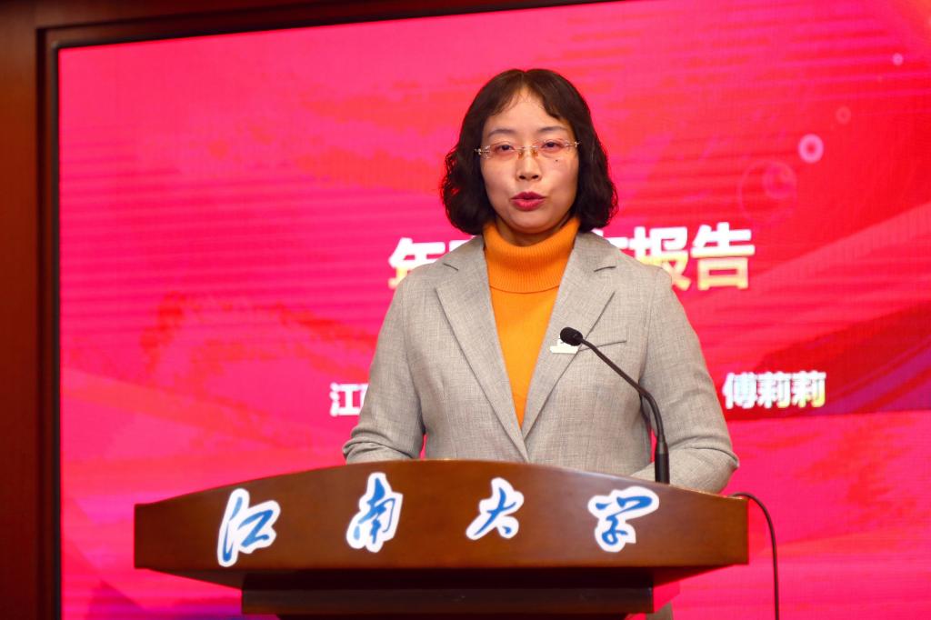 食品学院党委书记傅莉莉向大会作2020年基金会工作报告。她从基金运行、学生资助、育人创新、奖助评审等方面回顾了过去一年基金会的工作情况,她指出,理事会不断探索高校教育基金育人创新,共同搭建立德树人教育平台,用爱心传承实现食品强国梦。