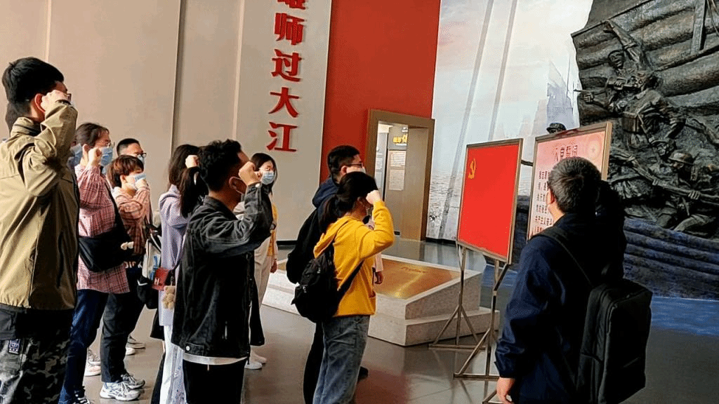 在渡江战役纪念馆前合影留念