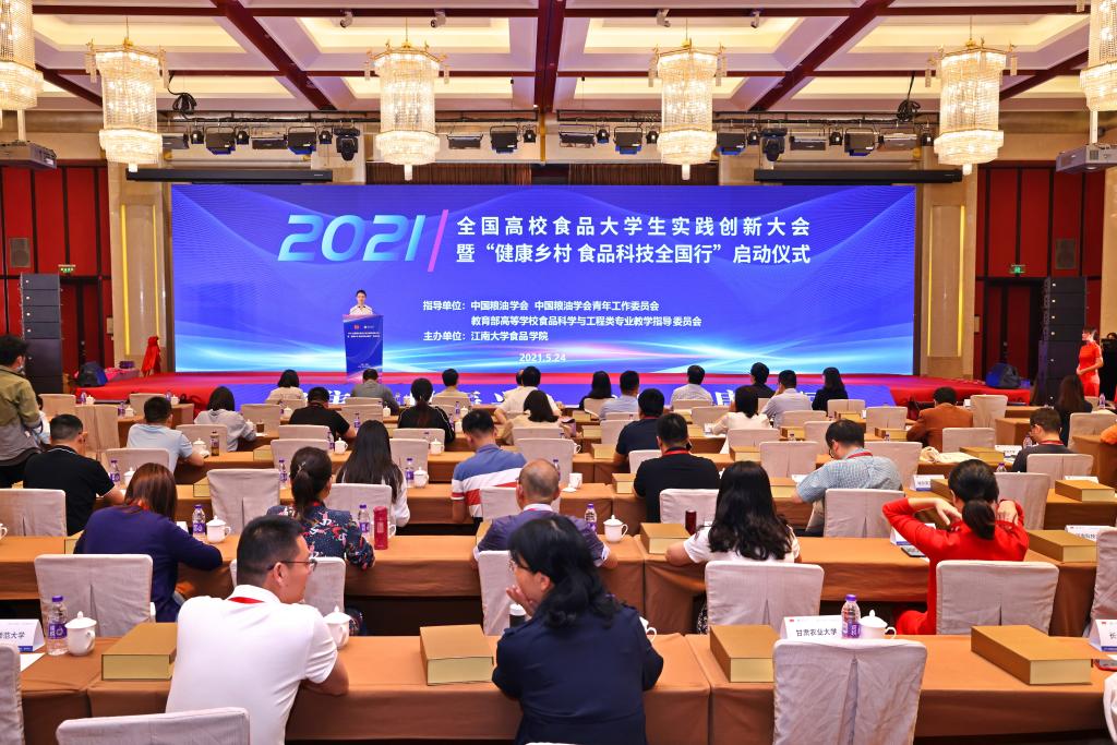 为助力乡村振兴、共筑健康中国,5月24日下午,2021全国高校食品大学生实践创新大会暨“健康乡村 食品科技全国行”启动仪式在江南大学举行。本次活动由中国粮油学会、教育部高等学校食品科学与工程类专业教学指导委员会指导,江南大学食品学院发起,受到全国58所食品类高校的积极响应,部分高校的领导、老师和学生代表齐聚一堂,围绕高校食品大学生实习实践、创新创业能力的培养展开研讨与交流。