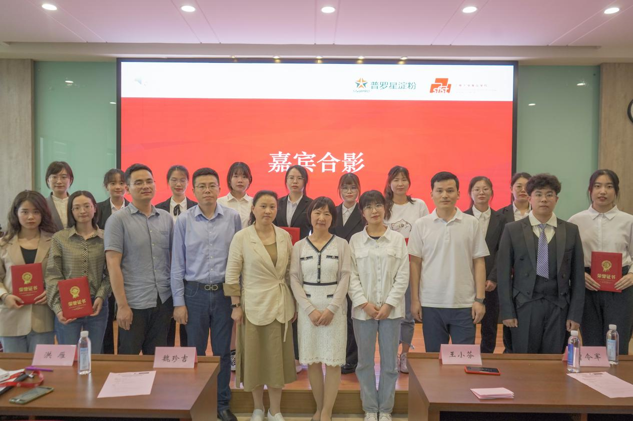 5月26日下午,第四届普罗星淀粉奖学金颁奖典礼暨普罗星淀粉创意大赛宣讲会在食品楼D912会议室举行。杭州普罗星淀粉有限公司研发处处长王小芬,应用研发科科长曾令军,食品学院党委副书记、副院长魏珍吉,食品学院教授洪雁等老师以及150余名学生参加了会议。