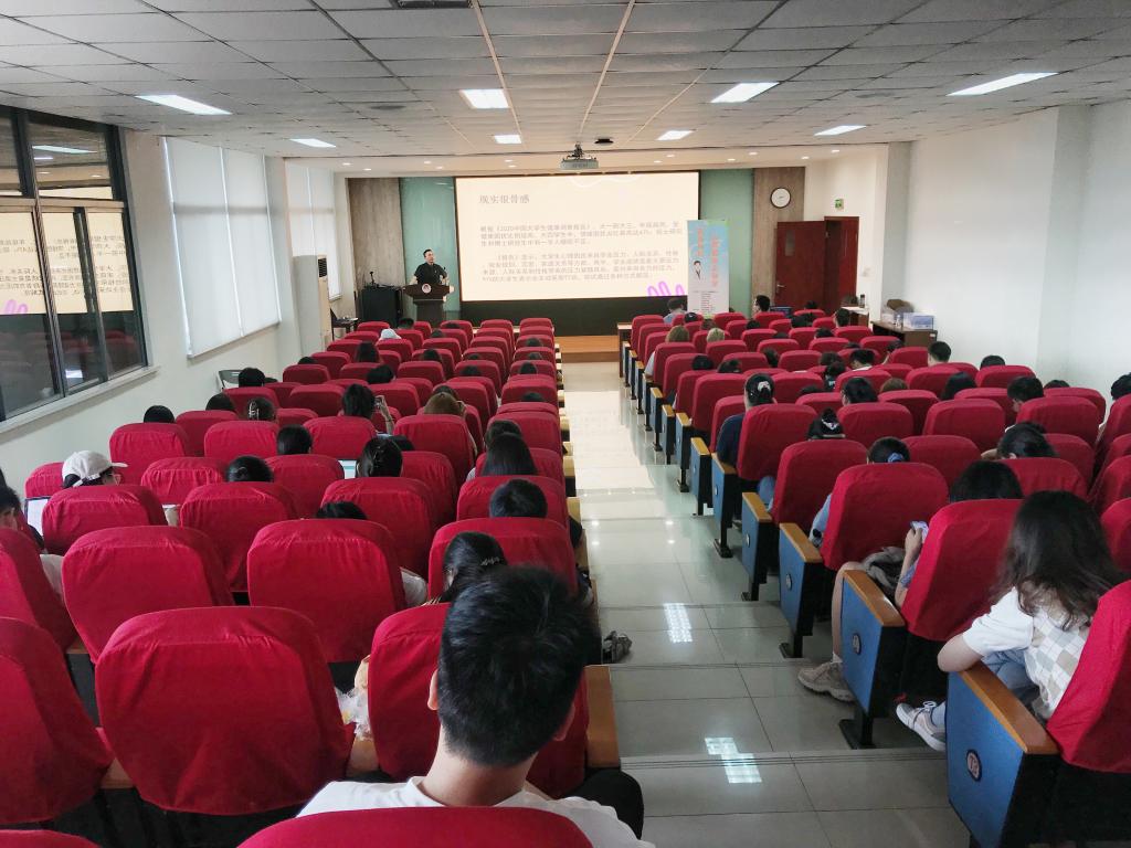 活动伊始,田霖与师生进行互动,分析了心理委员的职责以及大学生的现状。接着,田霖讲述了心理健康的概念,即能善待自己、及时调解情绪、不钻牛角尖等,进一步讲述了大学生心理健康的表现:智力正常、情绪稳定、意志健全、人格完整、自我评价正确、人际关系和谐等,但现实是大部分大学生都经受着学业、就业、人际关系等多方面的困扰。随后,田霖分享了心理调适的方法,正确看待焦虑,合理安排生活,运用手指按摩法、冥想和呼吸训练等方式有效调节情绪,还在现场演示了吹泡泡呼吸法。最后,田霖表达了对同学们的美好希望与祝愿,祝福同学们度过美好的大学时光,养成健康和谐的心理状态。