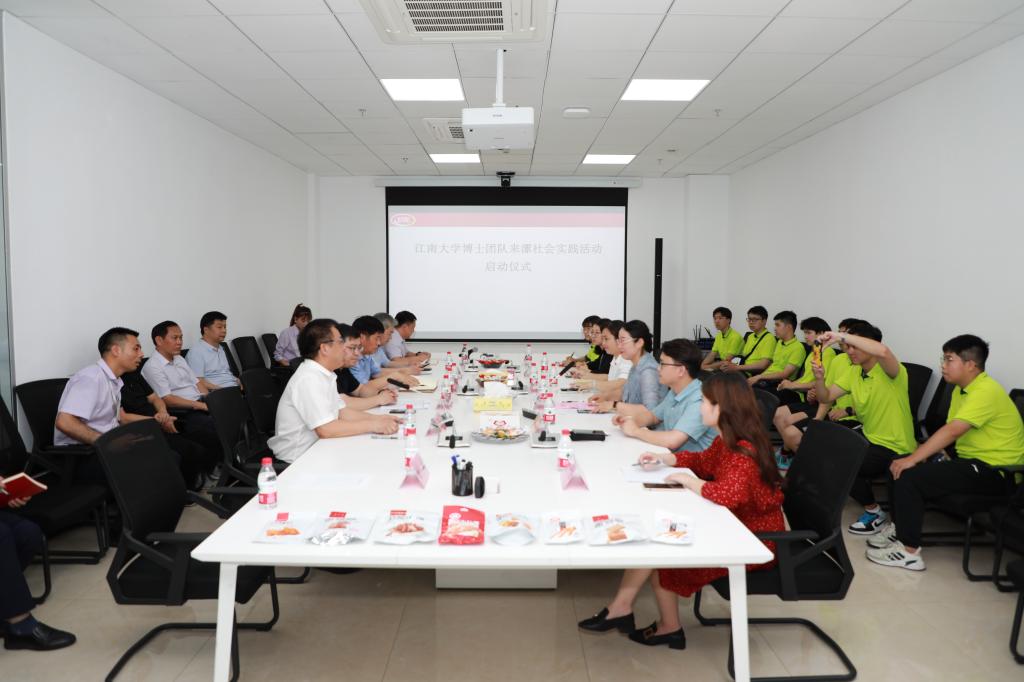 漯河市委市政府高度重视本次实践活动,市科技局精心组织江南大学博士团来漯社会实践活动启动仪式。漯河市副市长栗社臣,市政府副秘书长李景超,漯河市科技局党组书记、局长效国强,市委组织部副部长、市委人才办主任何志莹等热情接待了博士科技服务团一行,漯河市人才办、市科技局、市人社局、卫龙研究院等相关单位负责人,江南大学博士团师生一行参加了启动仪式。