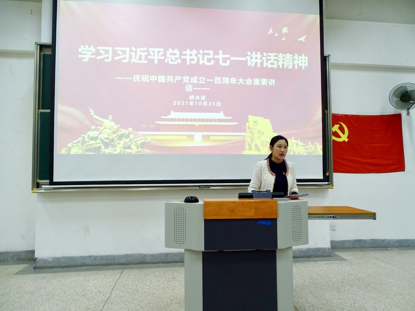 王新磊带领全体新生党员重温入党誓词。胡卉君领学了习近平总书记在庆祝中国共产党成立100周年大会上重要讲话。她强调,党员同志应始终牢记党员责任与义务,定期参加组织生活,有效发挥党员先锋模范作用,实现党建与科研双促进双提升。