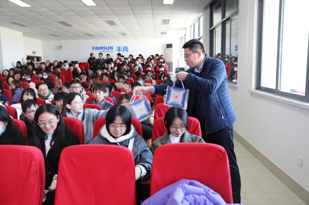 最后,魏珍吉、胡晓丹和吴爽为考研学子分发学院精心准备的定制版“考研大礼包”,印有“逢考必过”祝福语的帆布袋内装有坚果能量棒、加油书签、提神醒脑包、牛奶和肉脯,每一份慰问品都饱含着学院对考研学子的深深祝福和殷切关怀。