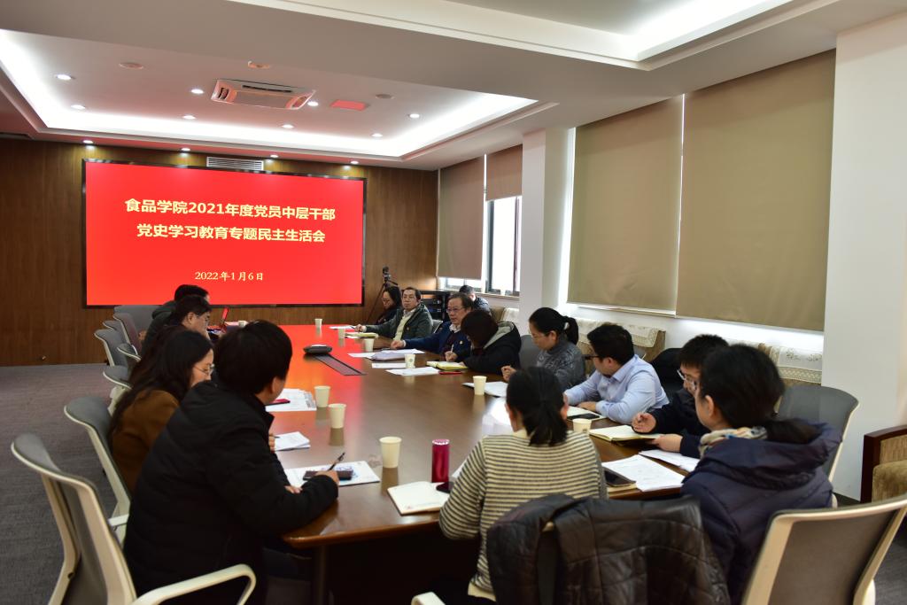 1月6日上午,食品学院2021年度党员中层干部党史学习教育专题民主生活会在D925会议室召开,学院党委全体党员中层干部参会,党外中层干部列席,校党委督导组督导、校党委书记朱庆葆,校纪委督导组督导、纪委监督检查室主任魏静也参加了会议。