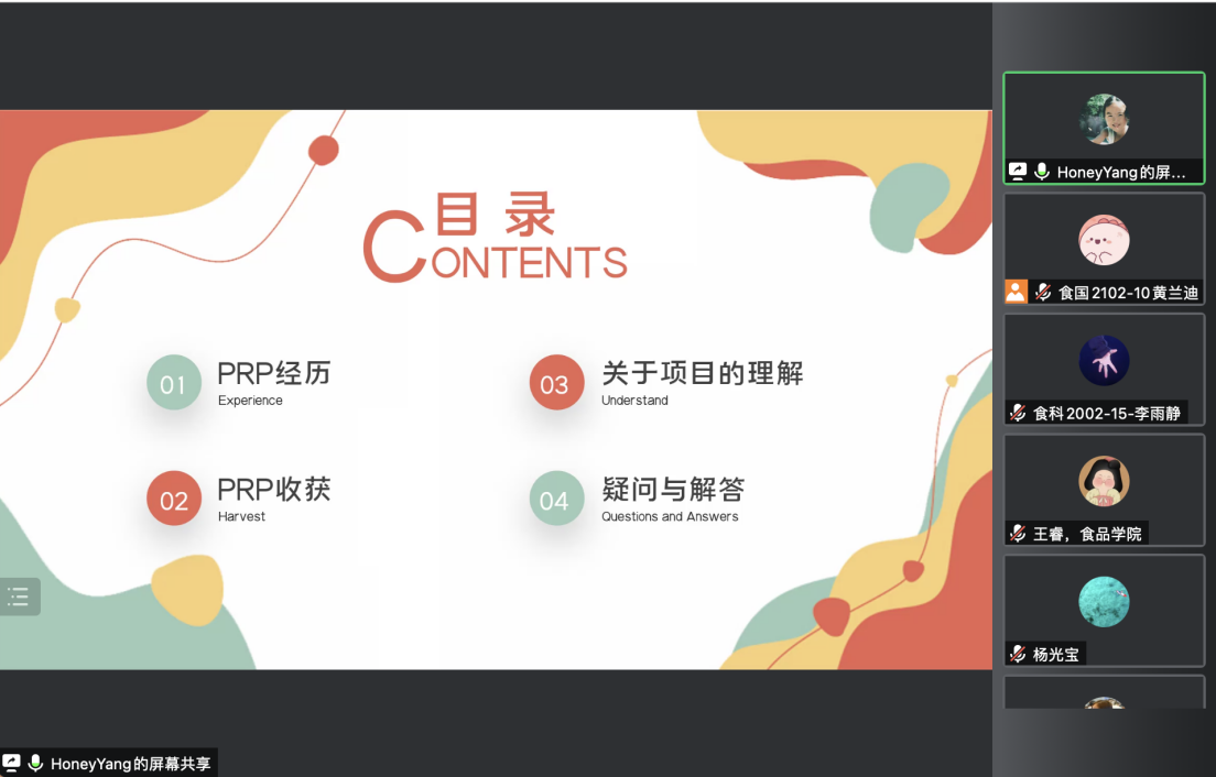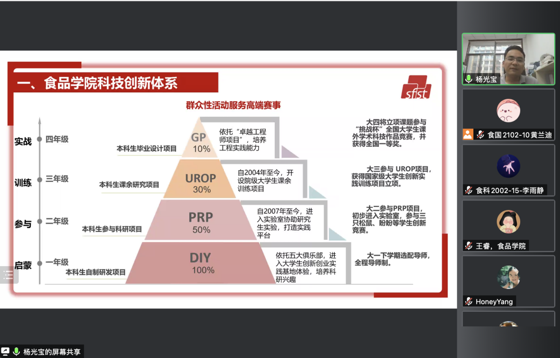近日,2021级PRP项目宣讲会在线上成功举行。食品学院竞赛辅导员杨光宝、2021级本科生辅导员张任,部分往届PRP项目代表,以及全体2021级本科参与活动。