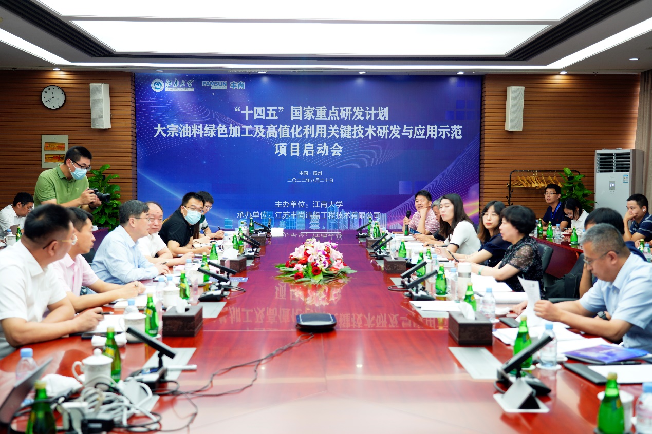 8月20日,由江南大学牵头承担、食品学院院长刘元法教授主持的“十四五”国家重点研发计划“大宗油料绿色加工及高值化利用关键技术研发与应用示范”项目启动会在江苏省扬州市以线上线下结合的方式召开。中国农村技术开发中心产业科技处副处长王静、教育部科技司项目主管赵梨利、江南大学科学技术研究院院长范大明出席会议,浙江大学刘东红教授等5位咨询专家莅临指导。启动会开幕式由项目负责人刘元法主持。