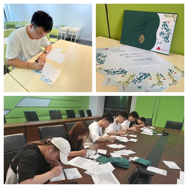 9月9日当天,食品学院营造了暖心氛围。食品学子在学院一楼大厅布置“教师-中秋”双节主题展板,为学院增添节日氛围。研究生会、学生会围绕师生交流的点点滴滴,精心设计制作了主题贺卡,手写真挚祝福,将贺卡与鲜花送到了老师们手上。同学们在卡片上写道“课内课外,还是线上线下,老师们都是学生为学、为事、为人的榜样”“老师给予食品学子追寻真理与梦想的力量”“一朝沐杏雨,一生念师恩”等内容。这些都是食品学子对老师们发自内心的感恩。