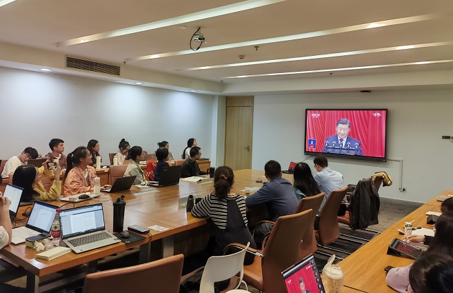 党的二十大是在全党全国各族人民迈上全面建设社会主义现代化国家新征程、向第二个百年奋斗目标进军的关键时刻召开的一次十分重要的大会。在学院党政领导的带领下,各党团支部、青马训练营分门别类开展集体学习活动,认真聆听、热议党的二十大报告。