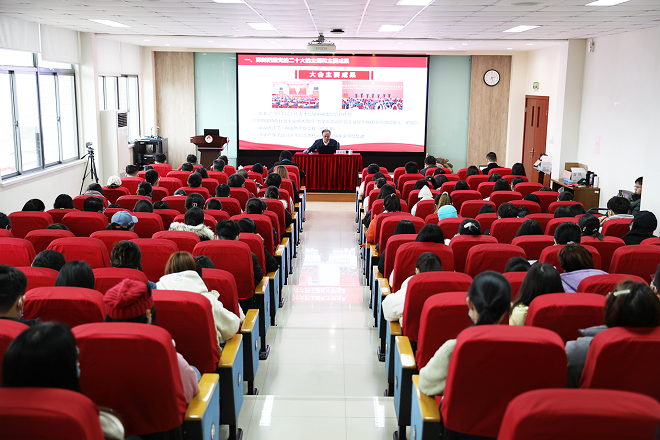 朱庆葆指出,党的二十大是在全党全国各族人民迈上全面建设社会主义现代化国家新征程、向第二个百年奋斗目标进军的关键时刻召开的一次十分重要的大会,是一次高举旗帜、凝聚力量、团结奋进的大会。他围绕党的二十大报告确定的重要思想、重要观点、重大战略、重大举措,从深刻把握党的二十大的主题和主要成果、深刻把握新时代十年的伟大变革、深刻把握新时代新征程面临的机遇和挑战、深刻把握开辟马克思主义中国化时代化新境界的历史责任、深刻把握以中国式现代化全面推进中华民族伟大复兴的使命任务、深刻把握全面从严治党的重大要求、深刻把握青年师生的责任使命等七个方面对党的二十大精神作了准确阐释和深入解读。