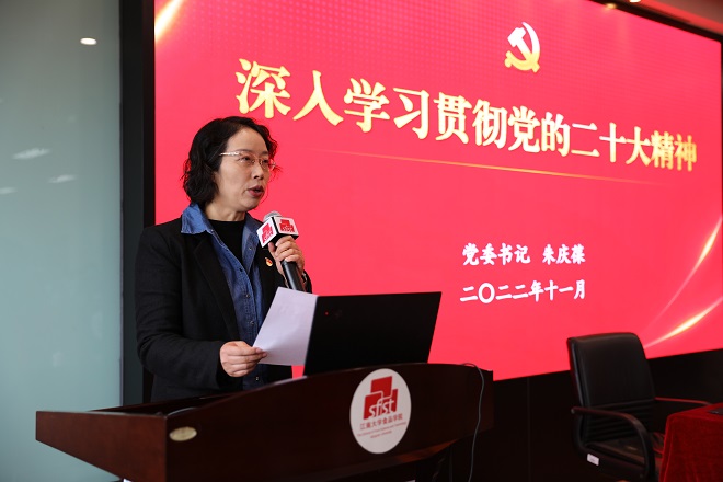 11月30日下午,校党委书记朱庆葆在食品学院D912会议室为师生代表作学习贯彻党的二十大精神辅导报告。食品学院党委中心组成员、行政党支部、本科生第一党支部、食科1904团支部等150余名师生参会。学院党委书记傅莉莉主持会议。